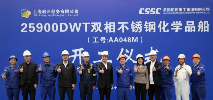 10月25日,由武昌船舶重工集團有限公司為上海君正船務有限公司承建的25900DWT雙相不銹鋼化學品船1號船開工儀式在武漢隆重舉行。